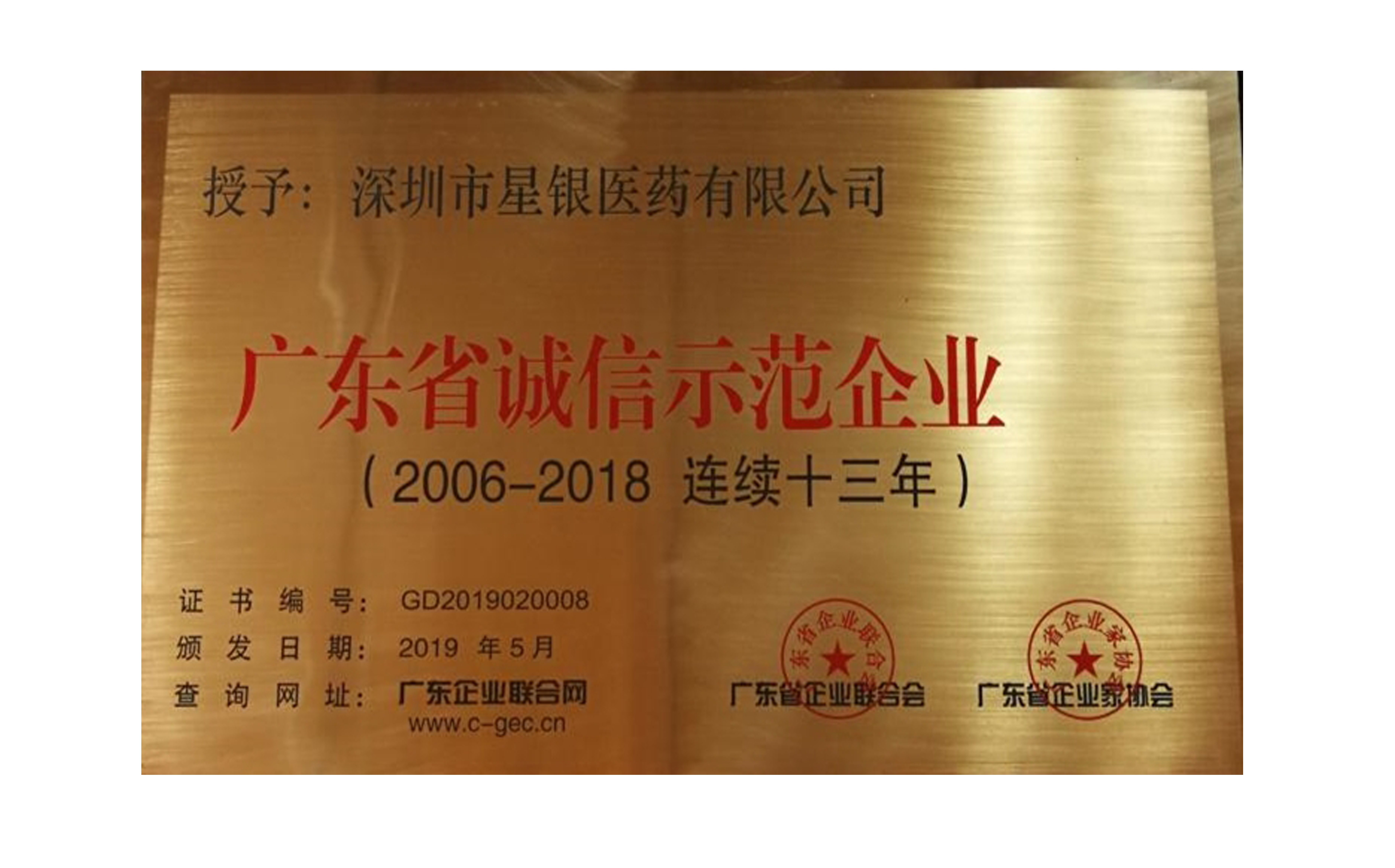 广东省诚信树模企业(一连十三年)